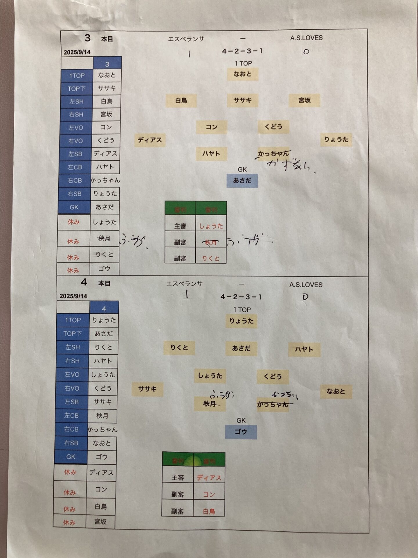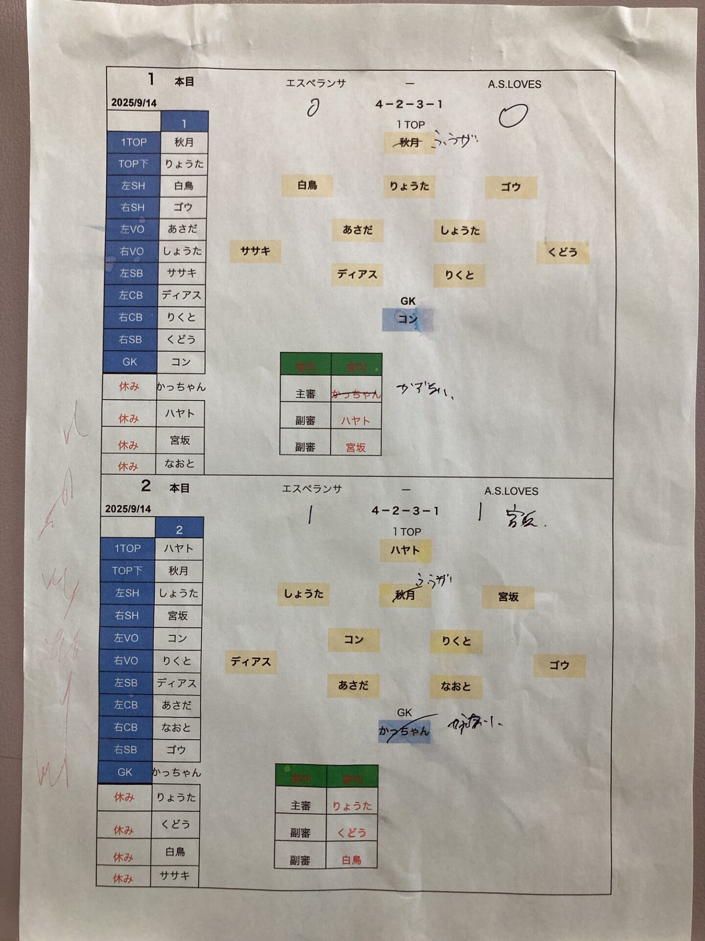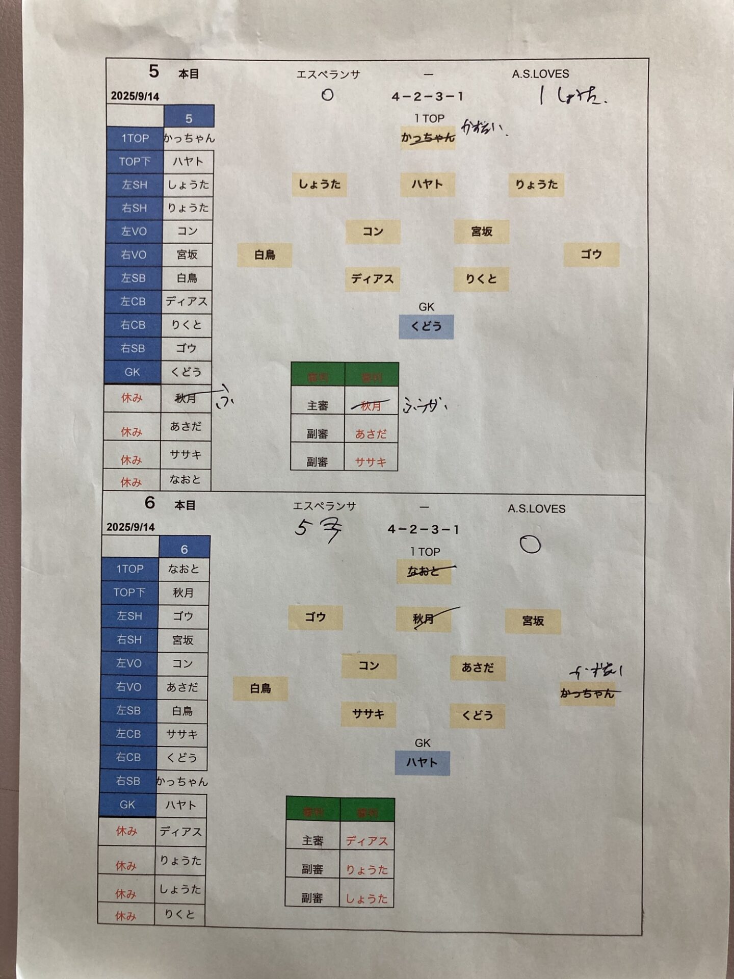 ササキさん、くどうさん最後のセンターバックすみません。