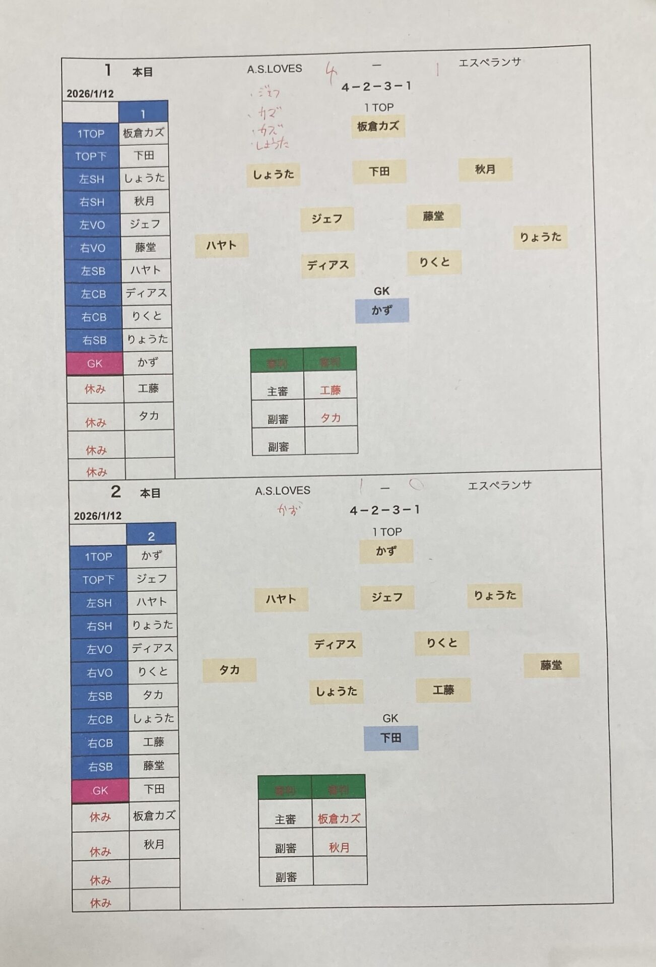 ②20分:A.S.LOVES 5−1エスペランサ(得点)ジェフ・カズ・カズ・しょうた・しょうた